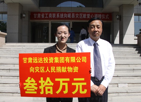 [2012-5-23]扶危濟(jì)困 奉獻(xiàn)社會 [2012-5-23]心系災(zāi)區(qū) 大愛遠(yuǎn)行 [2011-4-10]甘肅遠(yuǎn)達(dá)集團(tuán)向青海玉樹地震災(zāi)區(qū)捐助價(jià)值30萬...